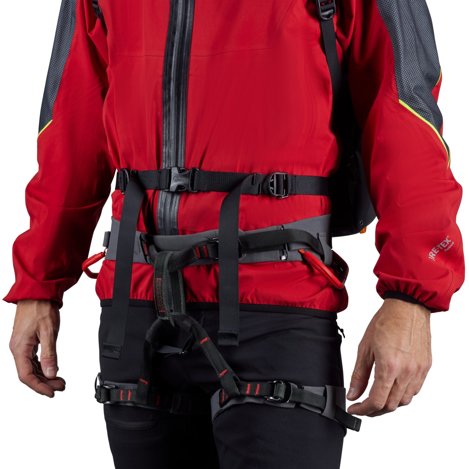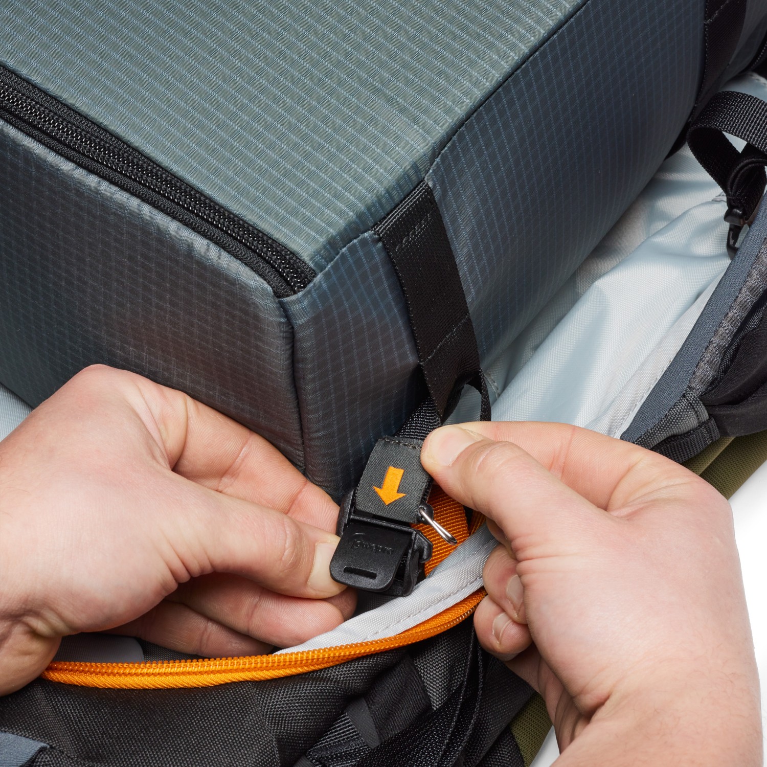 Dizajniran za besprijekornu suradnju s GearUP Pro kutijama za fotoaparat (L, XL i XXL), nudi kompatibilnost s uklonjivim, ovješenim ulošcima za fotoaparat radi dodatne zaštite i stabilizacije vaše opreme. Funkcionalan pristup s leđa omogućuje brzo vađenje opreme bez skidanja ruksaka, dok specifične značajke za planinarenje – poput petlji za sjekiru, pričvršćivača za užad i nošenja kacige – čine ga idealnim za alpske misije s više aktivnosti.