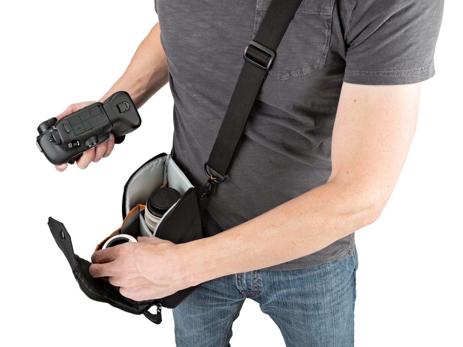 TopLoader odgovara kućištu punog okvira s rukohvatom i objektivom do 70-200 mm F2.8,