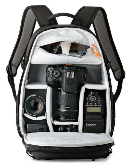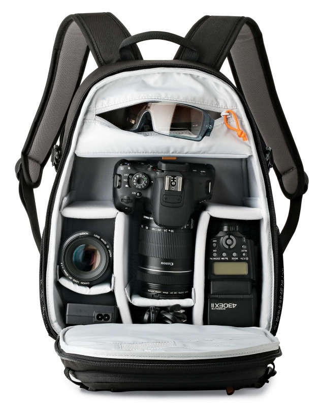 Prostrani glavni odjeljak s dvostrukim patentnim zatvaračem sadrži dva velika i dva mala podstavljena podesiva razdjelnika koji štite vaš fotoaparat, dva objektiva, blic i ostale dodatke, dok unutarnji džep na patentnom zatvaraču odvoji kabele i rezervne baterije.