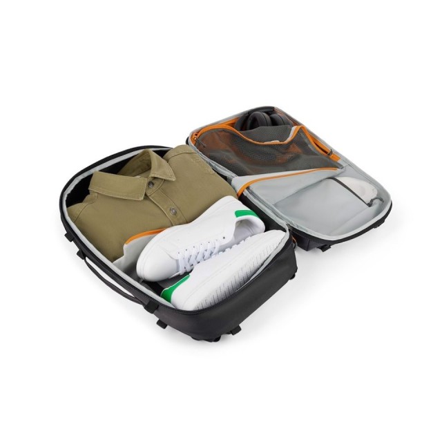 Ovaj ruksak može primiti, na primjer, Sony a7 ili a9 fotoaparat s montiranim objektivom, dva mala objektiva ili punjač i bateriju. Alternativno, može primiti DJI Mavic Pro 2 dron ili sličan sklopivi dron.