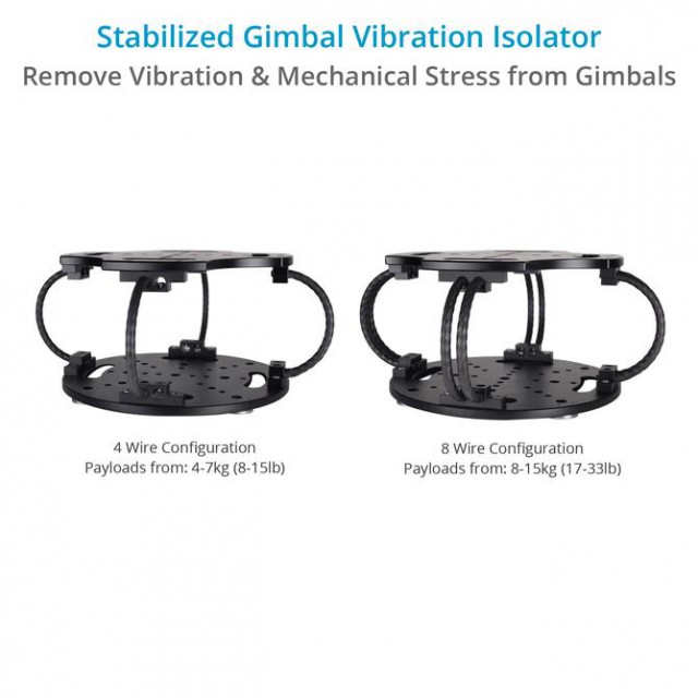 Ako postavu gimbala čvrsto pričvrstite na pokretnu platformu, bilo kakvo trzavo pomicanje stavlja ogroman stres na motore i ležajeve gimbala dok pokušava stabilizirati kameru. Visokofrekventne vibracije koje stvaraju pokretni dijelovi kao što su motori, lopatice rotora ili propeleri, te niskofrekventne vibracije apsorbirane iznenadnim promjenama smjera, sve apsorbira izolator žice. Ovo smanjuje stres na motore gimbala, koji sada moraju raditi samo na stabilizaciji smanjenog raspona vibracija, što zauzvrat produžuje život vašeg kardana.