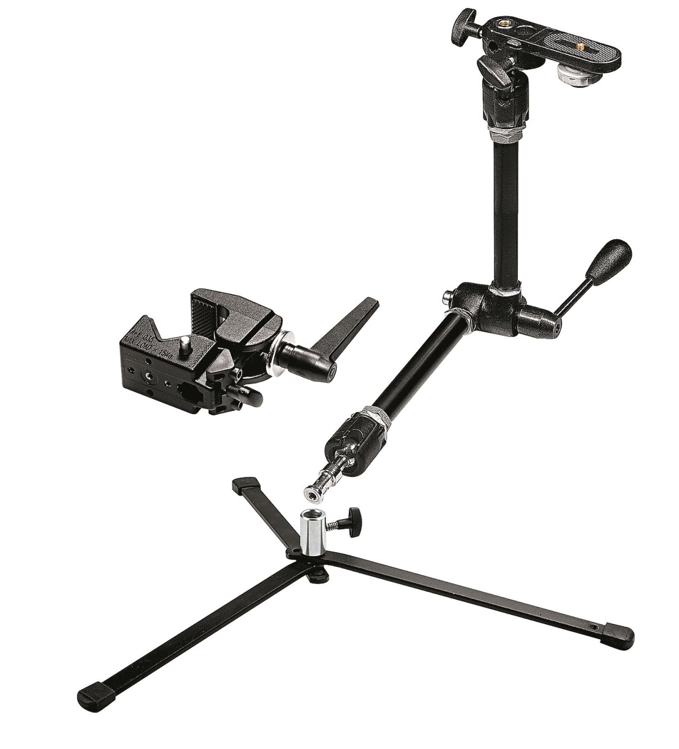 Manfrotto 143 Magic Arm Kit dizajniran je za držanje svjetla ili kamere na mjestu u raznim situacijama. Srce kompleta je Magic Arm - ruka za koljeno s određenom kontrolom poluge koja se može zaključati u točki zakretanja. Odvojivi nosač kamere se okreće i zaključava i ima standardni navoj od 1/4-20". Kada se nosač kamere ukloni, odgovara svakom svjetlu do 6,6 kg koje ima receptor od 5/8".