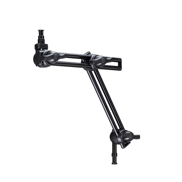 Manfrotto 396B-2 dvodijelna dvostruko zglobna ruka je crna aluminijska ruka od 640 g s produljivim kliznim dijelom (do 62,5 cm), nosivošću od 5 kg, sustavom brzog zaključavanja, nosačem kamere s 3/8" ženskim + 5/8" gornjim vijkom i donjim šesterokutnim/univerzalnim nastavkom protiv rotacije od 16 mm - pruža robusno i svestrano pozicioniranje za svjetla, kamere ili monitore u studiju ili na lokaciji.