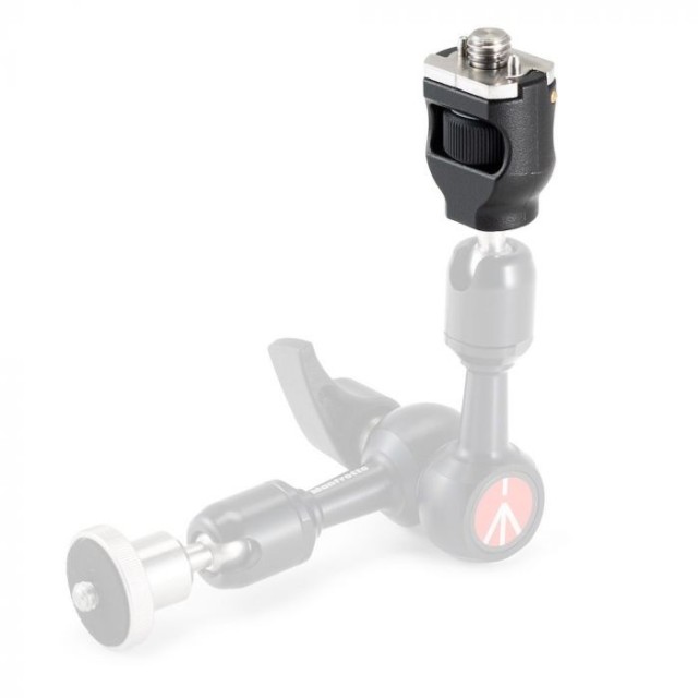 ARRI-Style Anti-Rotation Adaptér Manfrotto s 3/8" závitem podporuje až 3 kg a je kompatibilní s rameny Manfrotto 244 Mini a Micro. Tento adaptér využívá široce používané připojení ve video a filmovém průmyslu, které se často nachází na kamerových rámech, monitorech, LED světlech a stativech. Adaptér je vybaven vroubkovaným utahovacím šroubem, 3/8"-16 vnějšími závity a dvěma čepy pro zamezení rotace. Deska adaptéru je oboustranná, což umožňuje použití bez pinů.