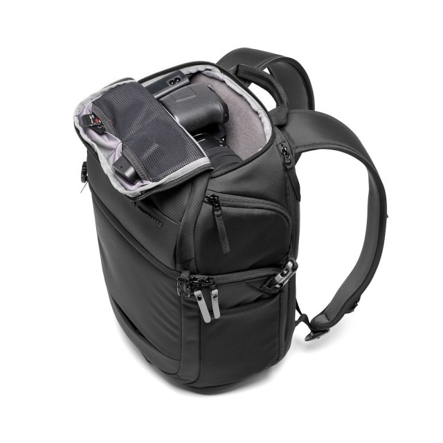 Višenamjenski ruksak za kameru i prijenosno računalo za brzo snimanje. Manfrotto Advanced Fast ruksak III dizajniran je da bude izuzetno svestran i zadovolji vaše različite potrebe korištenja: dvostruki bočni pristup glavnom odjeljku za opremu , gornji pristup za osobne predmete ili drugo tijelo fotoaparata , kako želite, prednje otvaranje za jednostavno postavljanje cijelog vašeg fotoaparata. Torba je dizajnirana za jednostavan smještaj fotoaparata bez zrcala punog formata s pričvršćenim 70-200 mm f/4 zajedno s 3 dodatna objektiva i bljeskalicom .