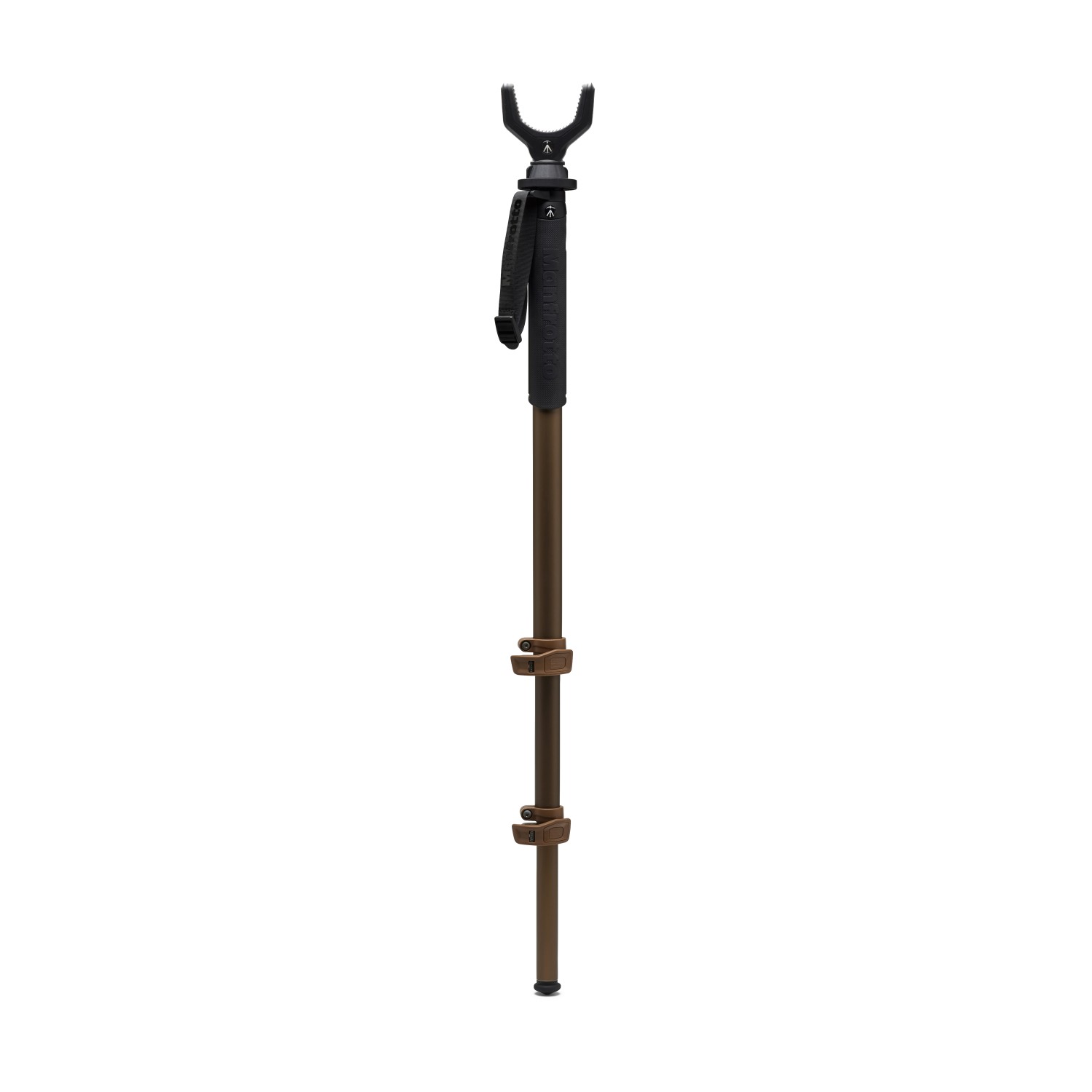 Izgrađen na Manfrottovoj provjerenoj XPRO monopod platformi, ALPHA SHOT zamjenjuje standardni remen za zglob i stopalo velikim ergonomskim V-jarmom i produženim gumenim grijačem za noge, pružajući lovcima stabilan i tihi odmor za puške ili sačmarice u bilo kojem smjeru bez promjene hvata. Tri aluminijska dijela trenutno se zaključavaju Manfrotto Quick Power Lock ručicama, podstavljeni grijač za noge omogućuje čvrsto rukovanje čak i s rukavicama ili po hladnom vremenu, a dno prihvaća Manfrotto šiljaste nožice (prodaju se zasebno) za meko tlo. Idealan za prikradanje, lov s čete ili potjera gdje su brzina i stabilnost ključni.
