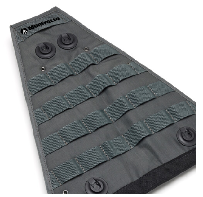 Manfrotto ALPHA SHOT organizator za noge pretvara obične noge stativa u potpuno prilagodljivu platformu za opremu. Fleksibilna, vodoodbojna najlonska/poliesterska obloga ima potpuni PALS (Pouch Attachment Ladder System) sustav za pričvršćivanje torbica tako da možete montirati gotovo svaku MOLLE kompatibilnu torbicu, futrolu ili pribor točno tamo gdje vam je potreban. Izdržljive čičak trake se beskonačno podešavaju i hvataju noge do 30 mm u promjeru, dok integrirana Fidlock magnetska sidra omogućuju ultra brzo pričvršćivanje službenih Manfrotto ALPHA SHOT terenskih i mesinganih torbica jednom rukom. Mekana konstrukcija znači da možete zatvoriti i nositi stativ bez uklanjanja organizatora, držeći vašu postavku spremnom za nekoliko sekundi.