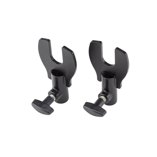 Manfrotto 081 kuke za bebe pretvaraju bilo koji stalak za svjetlo s gornjim klinom od 5/8" u čvrsti Expan nosač. Svaka kuka od crnog čelika s praškastim premazom ima U-oblikovani nosač koji zaključava metalnu jezgru Expana bez alata, dok opružni klin osigurava nulto klizanje pod opterećenjem. Isporučuju se u parovima, omogućuju postavljanje s jednim ili dva stalka za role širine do 2,72 m.