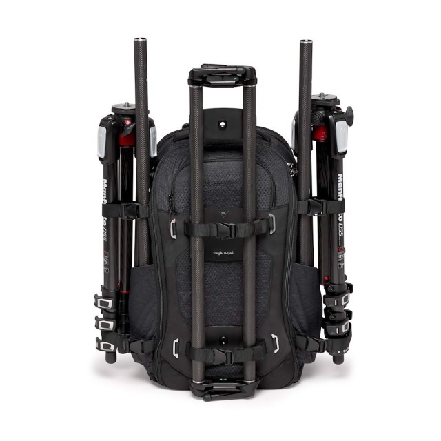 U ruksak se može smjestiti profesionalna oprema kao što su DSLR, CSC, višestruki objektivi, manji sklopivi dronovi, stabilizatori i slična oprema. Poseban pretinac za stabilizator odvojen je od glavnog džepa