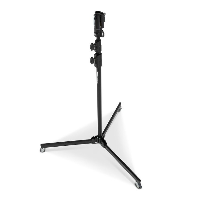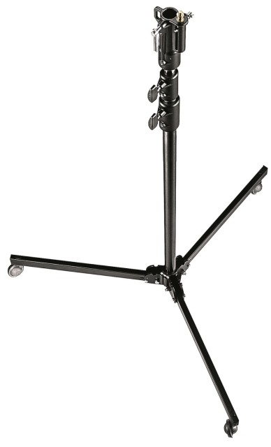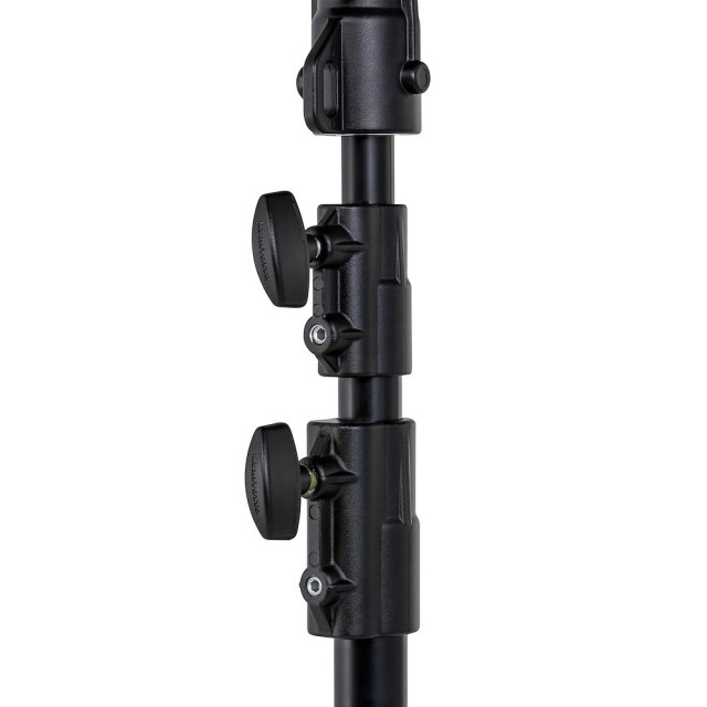 Manfrotto 298B crni aluminijski studijski stalak s 3 dijela je profesionalni stalak za svjetlo od 6 kg sa srebrnim eloksiranim aluminijskim stupovima (35/30/25 mm), crnom čeličnom sklopivom bazom na kotačima s kočnicama, jednom nivelirajućom nogom i nosivošću od 15 kg (5 kg pri punom produžetku od 300 cm) - pruža stabilnu, mobilnu potporu za srednja studijska svjetla, softboxove ili nadzemne rigove.