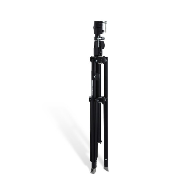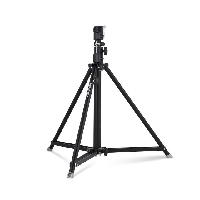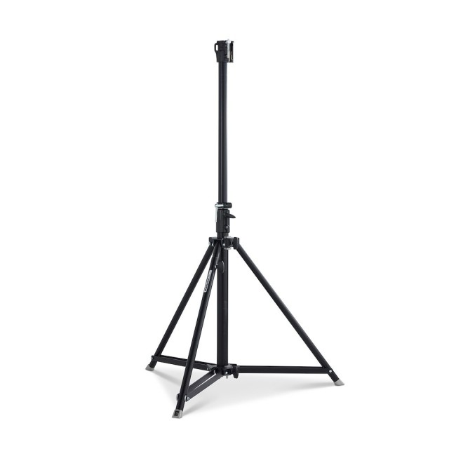 Manfrotto 070BU stalak ima okvir od crno eloksiranog aluminija težine 6,2 kg. Dva zračno amortizerska podizača se izvlače pomoću glatkih ovratnih brava do maksimalne visine od 147 cm, dok dvostruko ojačane kromirane čelične noge i široki otisak od 120 cm osiguravaju nulto savijanje pod opterećenjem od 35 kg. Univerzalna glava tipa 14 ima ženski utičnicu od 28 mm i mali klin od 16 mm sa sigurnosnim klinom, prihvaćajući bilo koji standardni priključak. Jedna noga za niveliranje podešava se ±15° kako bi se kompenzirali nagibi, a niska minimalna visina od 88 cm osigurava nesmetan pristup operaterima. Sa 105 cm sklopljenog stanja, to je stalak za kazalište, događaje uživo ili filmske setove gdje visina, stabilnost i brzo premještanje nisu o čemu pregovarati.