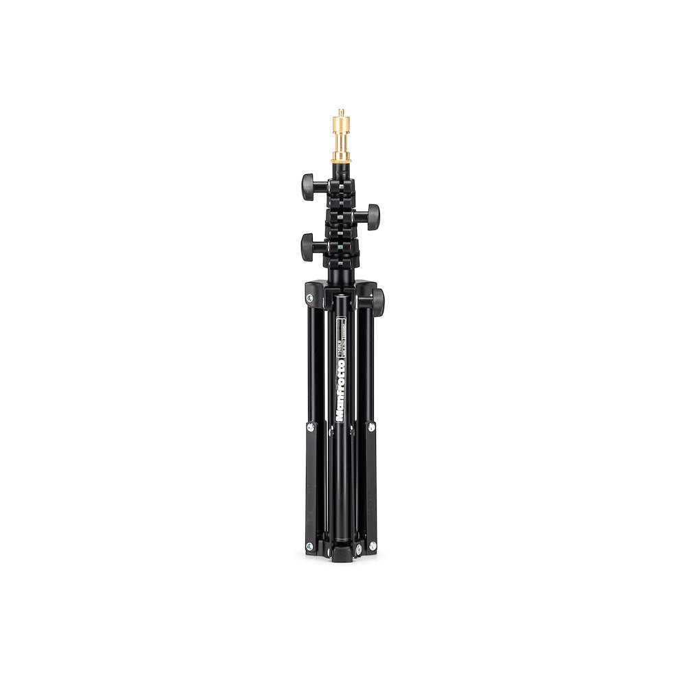 Manfrotto 156BLB crni aluminijski mini Pro stalak je ultrakompaktni stolni stalak od 620 g, s 4 dijela (3 dijela) koji se sklapa na 40 cm, proteže na 123 cm i podržava 1,5 kg s malim klinom od 5/8" (15,9 mm) + odvojivim vrhom od 1/4"-20 - pružajući laganu, krutu potporu pod niskim kutom za mala svjetla, kamere ili modifikatore u skučenim prostorima.