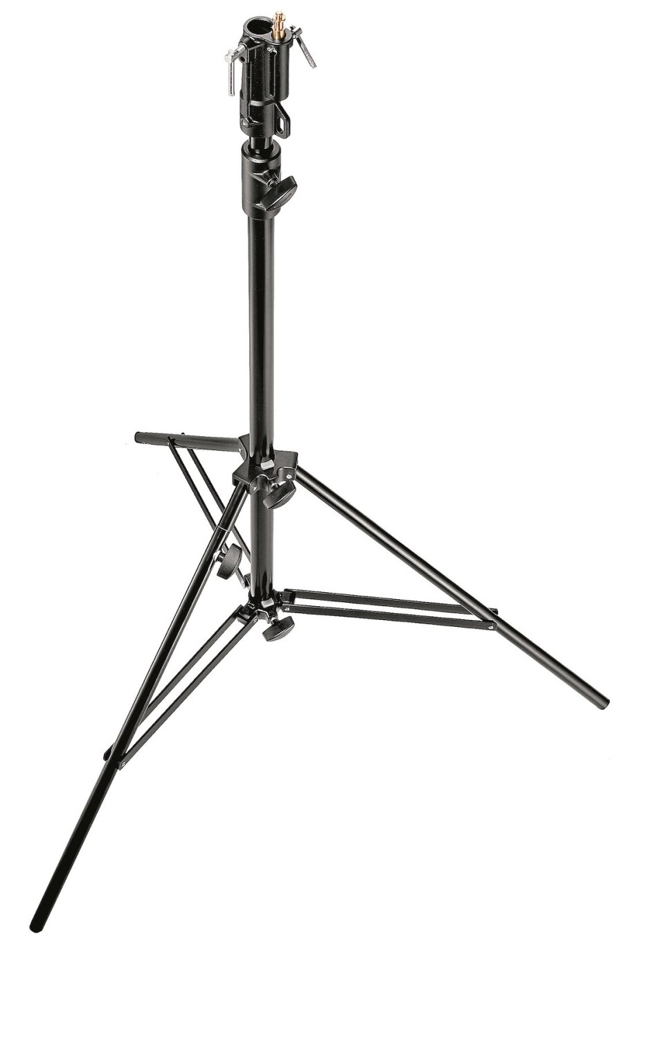 Manfrotto 008BSU crni cinkov čelik Junior stalak je dvodijelni, teški stalak s 1 uspravnom nogom koji se proteže 116–216 cm i nosivošću od 30 kg, dvostruko učvršćenim nogama, nivelirajućom nogom, univerzalnim 28 mm utičnicom + 16 mm glavom s vijkom i crnom cinkovom završnom obradom - pružajući izuzetno čvrstu stabilnost za srednja svjetla, modifikatore…