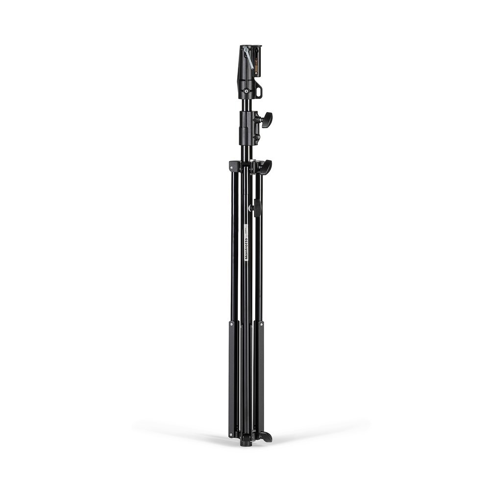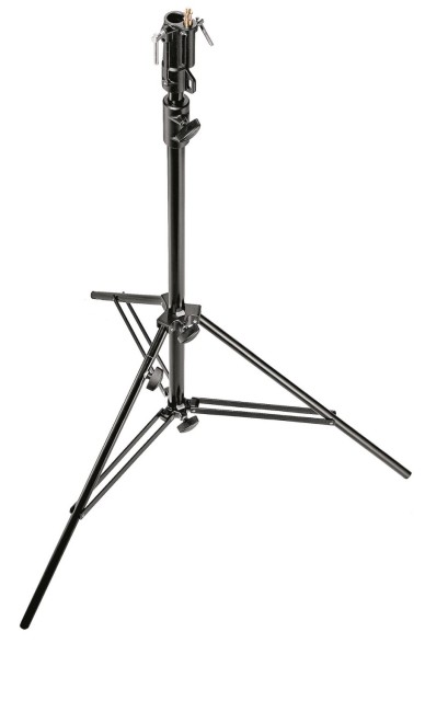 Manfrotto 008BSU crni cinkov čelik Junior stalak je dvodijelni, teški stalak s 1 uspravnom nogom koji se proteže 116–216 cm i nosivošću od 30 kg, dvostruko učvršćenim nogama, nivelirajućom nogom, univerzalnim 28 mm utičnicom + 16 mm glavom s vijkom i crnom cinkovom završnom obradom - pružajući izuzetno čvrstu stabilnost za srednja svjetla, modifikatore ili nosače u studiju ili na lokaciji.