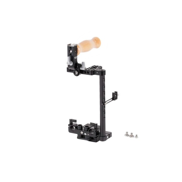 Izrađen od izdržljivog aluminija, ovaj minimalistički kavez je lagan, ali robustan, s montažnim točkama od 1/4" i 3/8" na vrhu i sa strane za pribor poput mikrofona, monitora i svjetala. Ima reverzibilnu gornju ručku s integriranim nosačem za hladnu papučicu i stezaljku za šipku od 15 mm za precizno pozicioniranje follow focus jedinica ili matteboxova. Ručka se može sklopiti za kompaktan transport ili montirati okomito za dodatni hvat.