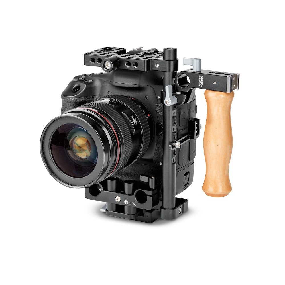 Manfrotto MVCCL kavez za velike DSLR fotoaparate pruža profesionalno rješenje za filmaše i fotografe koji koriste velike DSLR ili fotoaparate bez zrcala, uključujući Canon 1DC, 1DX seriju, Nikon D3X–D5, D800*, D810*, D850 i fotoaparate s držačima baterija poput Sony Alpha serije ili Fujifilm X-H1.