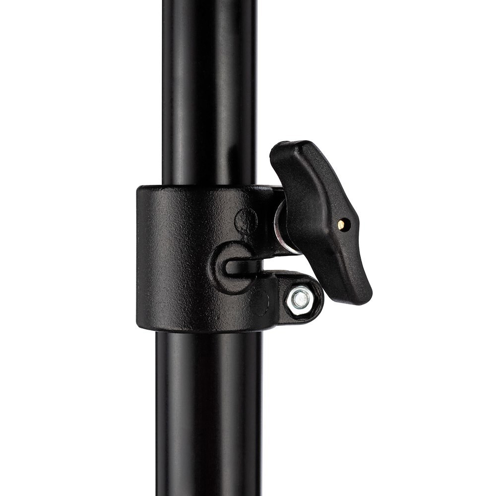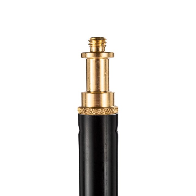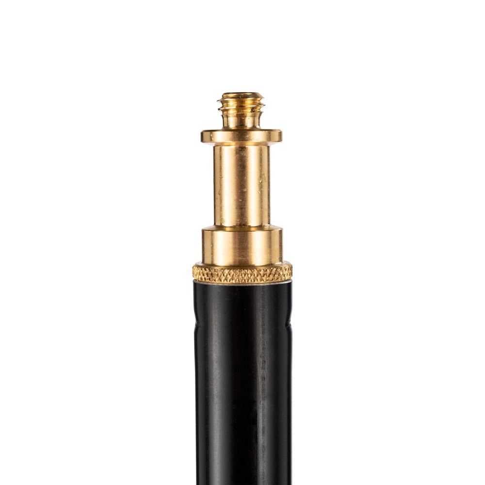 Manfrotto 099B produžni stup uvlači se u bilo koju dječju utičnicu od 5/8" i zaključava se pomoću okretnog ovratnika kako bi dosegao ukupnu visinu od 235 cm. Tri aluminijska dijela glatko se otvaraju s ergonomskim gumenim ručkama, dok je crni premaz otporan na ogrebotine i odsjaj. Muški klin od 3/8"-16 na vrhu prihvaća standardne montažne nosače - savršene za svjetla za kosu, snimke proizvoda odozgo ili nosače. S težinom od samo 600 g i 90 cm u sklopljenom stanju, ovo je idealno rješenje za podizanje malih do srednjih svjetiljki bez punog stalka, idealno za portretne studije, video setove ili setove za snimanje lokacija.