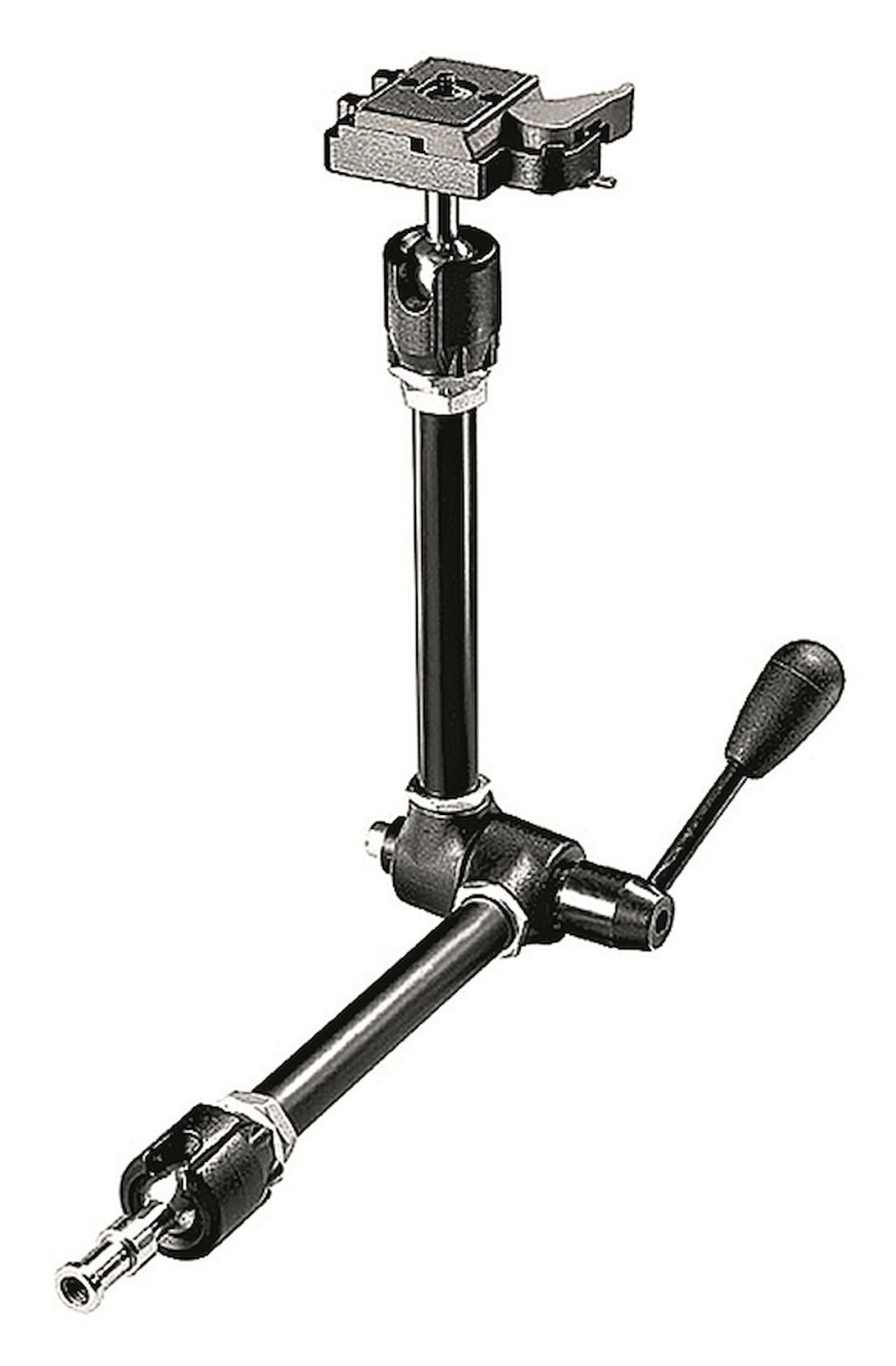 Tvoja druga ruka u studiju. Manfrotto Magic Arm 143 RC je varijabilna zglobna ruka s pločicom za brzo otpuštanje. Dolazi sa sekundarnom sigurnosnom bravom temeljenom na sustavu 200PL-14. Jedna poluga zaključava tri okretne točke. Idealno za montažu vašeg fotoaparata ili kamkordera točno pod kutom koji vam je potreban. Spoj s rupom od 5/8" posebno dobro funkcionira s 035 Super stezaljkom