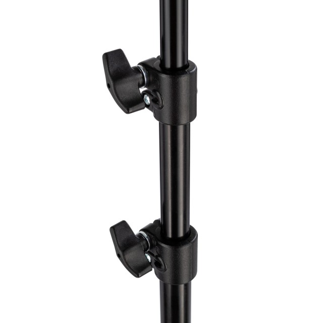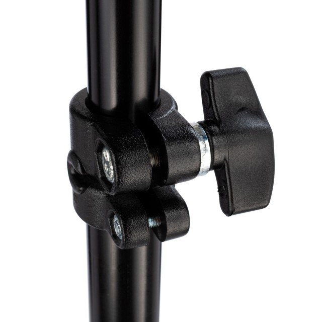 Manfrotto 157B-4 je klasičan, provjeren mikrofonski nosač s 4 dijela, dizajniran za svakodnevnu profesionalnu upotrebu. Izrađen od crnog eloksiranog aluminija, glatko se proteže do punih 223 cm (preko 7 stopa), ali se kompaktno sklapa na 67 cm za transport. Gornji kraj završava univerzalnim Baby klinom od 5/8″ s odvojivim vrhom od 3/8″, koji odgovara gotovo svakom shock mountu, kopči za mikrofon ili dodatnoj opremi na tržištu. Pozitivne ovratne brave s twist-lock zaštitom osiguravaju nulto klizanje pod opterećenjem, dok lagana konstrukcija od 610 g svodi umor operatera na minimum tijekom dugih snimanja.