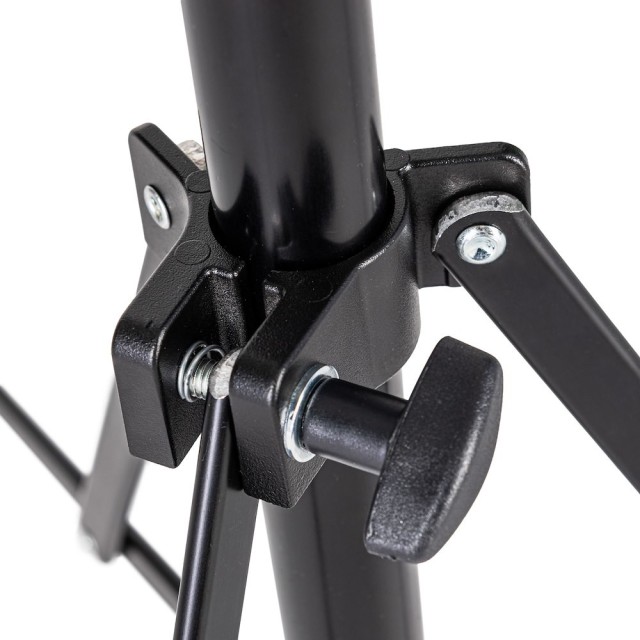 Manfrotto 5001B-1 Nano stalak sadrži profesionalnu stabilnost u crnom eloksiranom aluminijskom okviru koji se sklapa na samo 49 cm. Pet dijelova (25/22/19/16/13 mm) s četiri podizača s okretnim zaključavanjem glatko se rasklapaju do maksimalne visine od 190 cm, dok se pravokutne noge koje se sklapaju unatrag (15 × 5 mm) stvaraju otisak od 100 cm za nulto klimanje pod opterećenjem od 1,5 kg. Vrh ima 16 mm (5/8") mali klin s uklonjivim adapterom tipa 19 (navoj 3/8"-16 ili 1/4"-20) za univerzalnu kompatibilnost. S težinom od 960 g, to je ultimativno lagano rješenje za vlogere, kreatore sadržaja ili snimatelje kojima je potrebno brzo postavljanje, usklađenost s propisima o ručnoj prtljagi u zrakoplovu i pouzdane performanse s kompaktnim COB LED diodama, speedlightovima ili mini softboxovima.