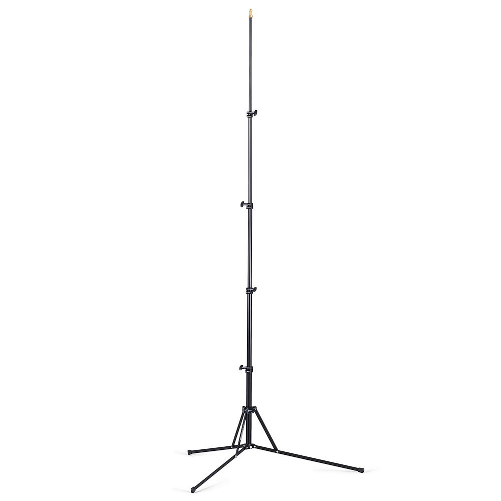 Manfrotto 5001B-1 Nano stalak za rasvjetu je kompaktni stalak od 960 g crnog aluminija s 5 dijelova (4 dijela) koji se sklapa na 49 cm, proteže na 190 cm i podržava 1,5 kg s pravokutnim nogama koje se preklapaju unatrag, nastavkom za bebe od 5/8" (16 mm) + uklonjivim adapterom s navojem od 3/8" ili 1/4" - pružajući ultra-prijenosnu, spremnu potporu za male LED svjetla, bljeskalice ili modifikatore na lokaciji.