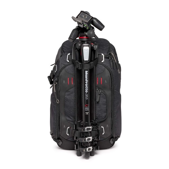 Također ima bočni nastavak koji vam omogućuje nošenje stativa pune veličine (do serije 055) i prednji nastavak koji se može podijeliti na 2 dijela za nošenje monopoda ili malih stalka za svjetlo. Također ima pretinac za prijenosno računalo od 15 inča pogodan za kontrolu, podesivu visinu torza, dva remena za prsa i podstavljeni pojas oko struka za raspodjelu tereta.