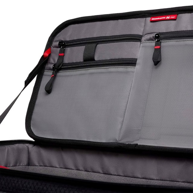 Cineloader Medium nudi nekoliko transportnih rješenja zahvaljujući velikim gornjim ručkama, ojačanim bočnim ručkama, uklonjivoj naramenici i petljama za kolica. Opremljen je unutarnjim AirTag džepom.