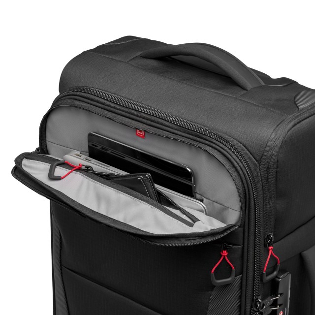 Unutarnji dio je opremljen EVA kalupom koji osigurava lakoću i zaštitu. U ovaj kofer za fotografije na kotačićima stane profesionalni SLR fotoaparat s objektivom od 400 mm, drugo DSLR tijelo i do 3-4 objektiva. Može udobno nositi modularni kamkorder kao što je Sony C100 s objektivima i dodacima. Može se prilagoditi opremi s 14 zaštitnih pregrada i 5 CPS prekidača koji se lako postavljaju. Osim toga, ima 2 unutarnja prolazna džepa za organiziranje svih vaših malih dodataka za fotoaparate, kabele, memorijske kartice, itd. Air-55 ima veliki lako dostupni prednji džep za vaše prijenosno računalo od 17 inča i drugi prednji džep za dokumenti i osobni predmeti.