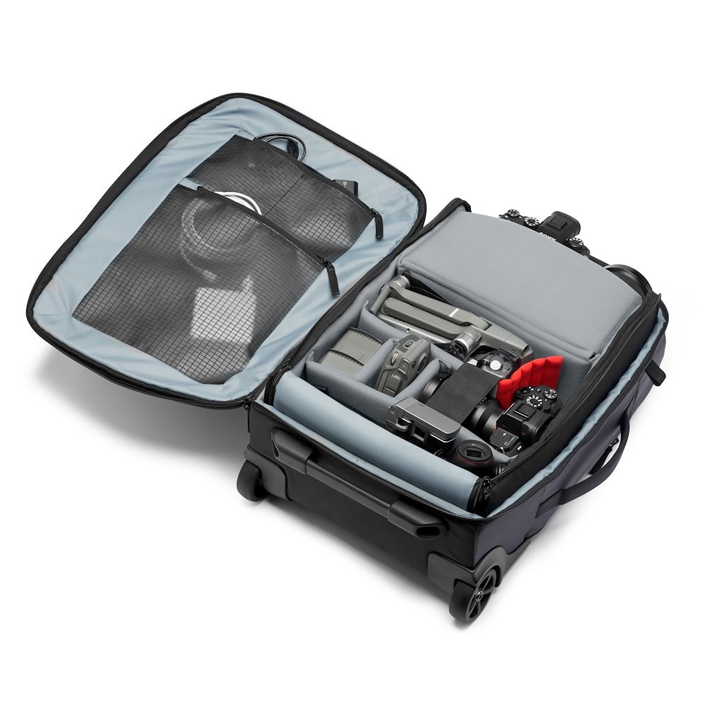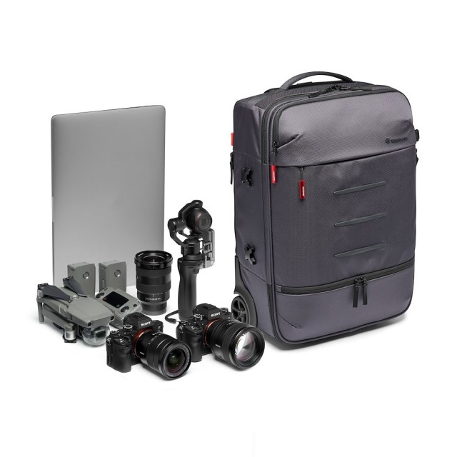 Manfrotto MB MN-R-RN-50 Manhattan Runner-50 je svestrana torba na kotačiće dizajnirana za DSLR, CSC i dronove fotografe u pokretu. Kombinirajući funkcionalnost fotografske torbe i putnog kofera, ima uklonjivi Flexy Camera Shell uložak koji se pretvara u ruksak, namjenski pretinac za prijenosno računalo, tkaninu s vodoodbojnim premazom te inovativni prostor za pohranu stativa i dodatne opreme za besprijekorno putovanje i snimanje.
