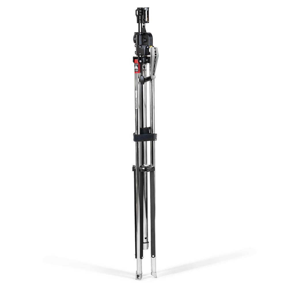 Manfrotto 083NW je izdržljivi, crni kromirani čelični stalak na navijanje s 2 dijela koji sigurno podiže teret do 45 kg (30 kg pri punoj visini od 247 cm) jednom ručnom ručicom, ima ugrađenu nivelirajuću nogu, univerzalne gornje nosače za Junior/Baby i prihvaća opcionalne setove kotača (104/104G), što ga čini vrhunskim sigurnim studijskim stalakom velikog kapaciteta za velika svjetla, okvire iznad glave i teške opreme.