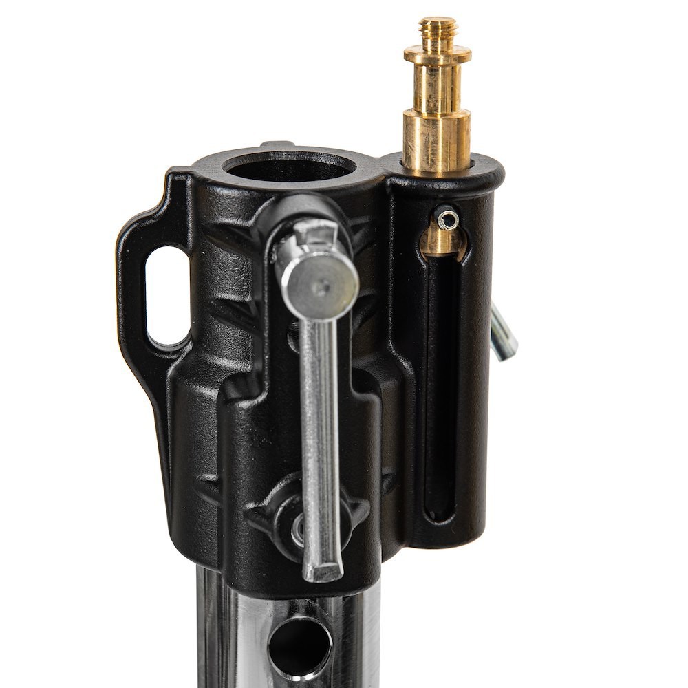 Manfrotto 083NW stalak na navijanje kombinira ekstremnu snagu s glatkim i preciznim radom. Njegov patentirani stup s prijenosnikom i sigurnosnom ručicom podiže i spušta terete do 45 kg bez naglih padova, dok se dvodijelna konstrukcija od kromiranog čelika (promjera 55 mm + 45 mm) proteže do radne visine od 247 cm. Jedna podesiva noga za niveliranje osigurava savršeno okomito poravnanje na neravnim podovima, a univerzalni vrh nudi 28 mm Junior prijemnik, 16 mm Baby klin i 3/8″ navoj za potpunu kompatibilnost.