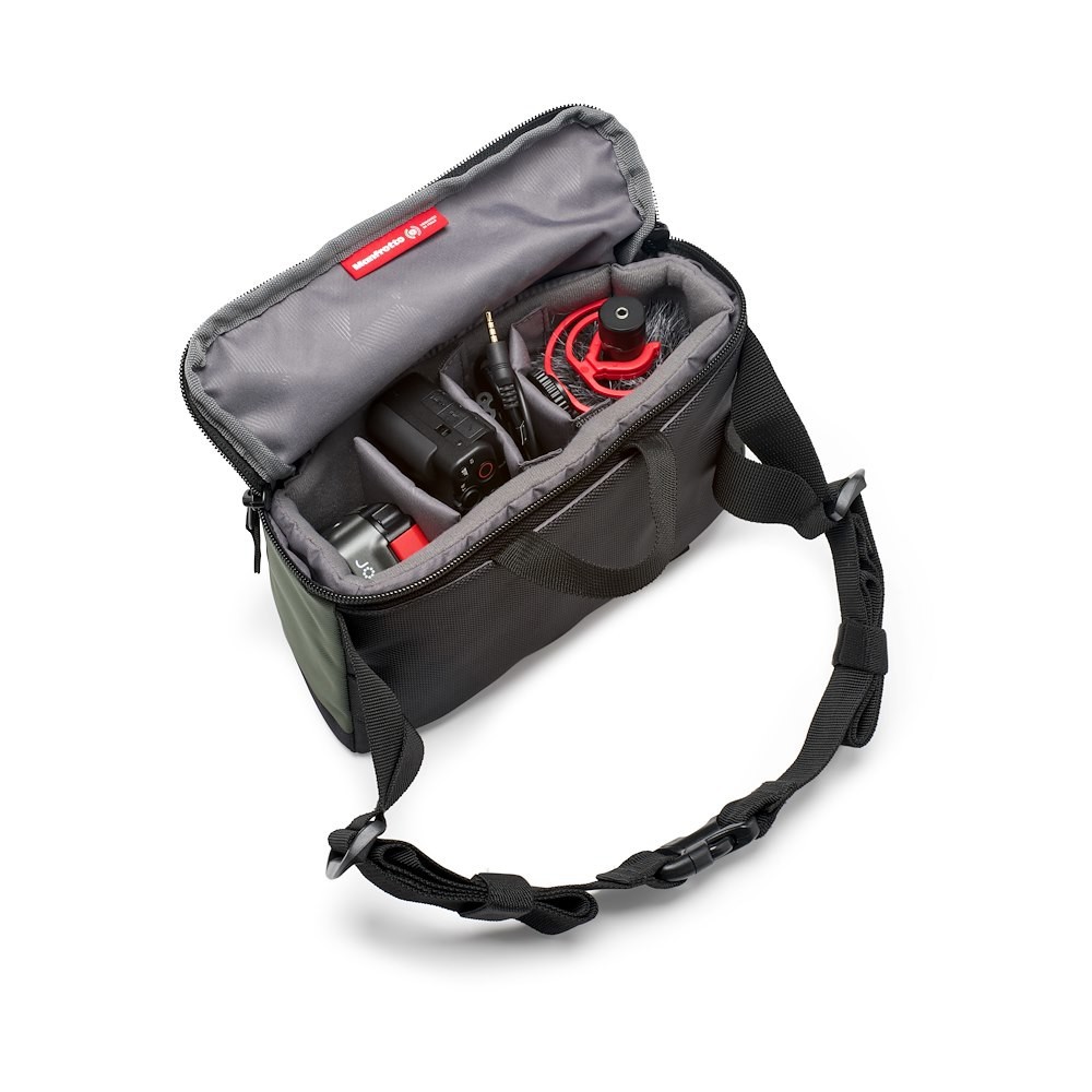 Manfrotto Street torba za struk pretvara se iz torbice za struk u remen za nošenje preko tijela pomoću 4 cm širokog, dvostruko podesivog remena s čvrstom kopčom za brzo otpuštanje. Glavni pretinac s patentnim zatvaračem otvara se odozgo prema dolje za trenutni pristup opremi, dok uklonjivi podstavljeni uložak s pomičnim pregradama osigurava CSC (A6400, EOS M50) s kit objektivom i jednim fiksnim objektivom ili vlog opremu s mikrofonom/LED diodom. Rastavite uložak za svakodnevnu torbicu od 2 l za telefon, novčanik i ključeve. S težinom od samo 300 g, to je vrhunsko rješenje za ulične fotografe, putnike na posao ili pilote dronova kojima je potrebno brzo i fleksibilno nošenje.
