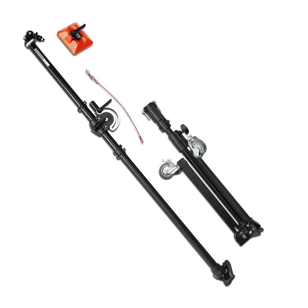 Manfrotto 025TM Super Boom sa stupnim stalkom je profesionalni sustav nosača na kotačima s protuutegom, dizajniran za precizno pozicioniranje svjetala ili malih kamera, koji podržava do 5 kg pri punom istezanju.