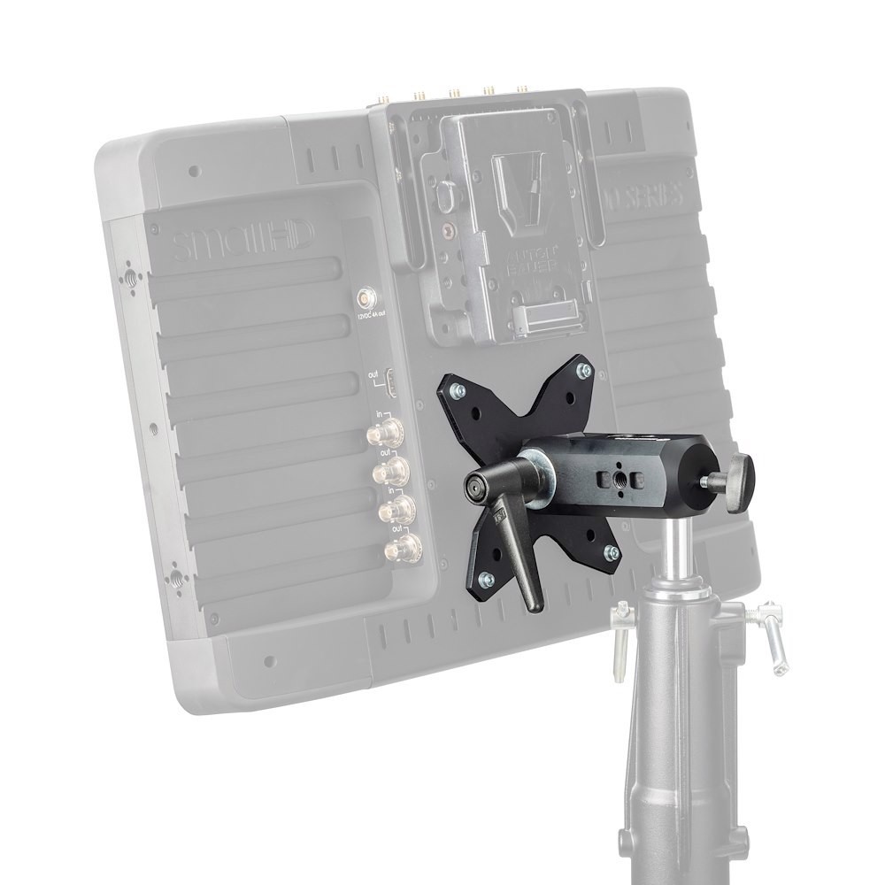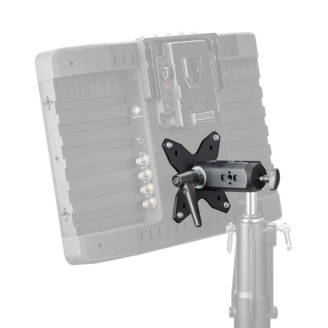 Nakon što se sigurno pričvrsti na odabrani monitor, nosač se može pričvrstiti na bilo koji prikladan nosač kao što je stalak za svjetiljku, frikciona ruka ili zidna ploča pomoću utičnice od 16 mm (5/8") i pričvršćen T-gumbom u pejzažnom ili portretnom položaju . Vertikalni nagib može se podesiti pomoću ručke s čegrtaljkom visokog zakretnog momenta, omogućujući korisniku sigurno i pouzdano obavljanje malih prilagodbi prema potrebi.