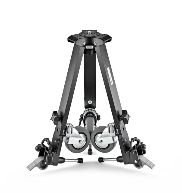 Manfrotto MDOLLYVR podesiva mobilna baza za virtualnu stvarnost je glatko kotrljajuća, stabilna mobilna baza dizajnirana za virtualne ture i 360° snimanje, koja nudi podesivu širinu otiska, velike kotače koji se mogu zaključati i izvrsnu stabilnost za lagane do srednje stative.