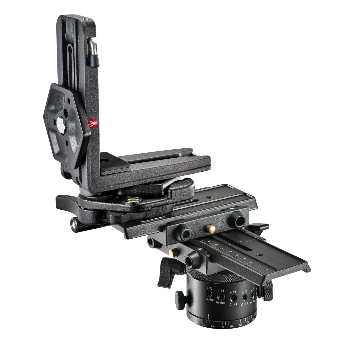 Manfrotto MH057A5 je profesionalna glava za virtualnu stvarnost i panoramski pogled izgrađena oko legendarne rotacijske jedinice od 300N, s kliznim horizontalnim i vertikalnim pločama s laserski graviranim skalama za precizno poravnanje čvornih točaka, brzim nosačem za koljeno za trenutnu portretnu orijentaciju i panoramskim snimanjem od 360° bez klika.