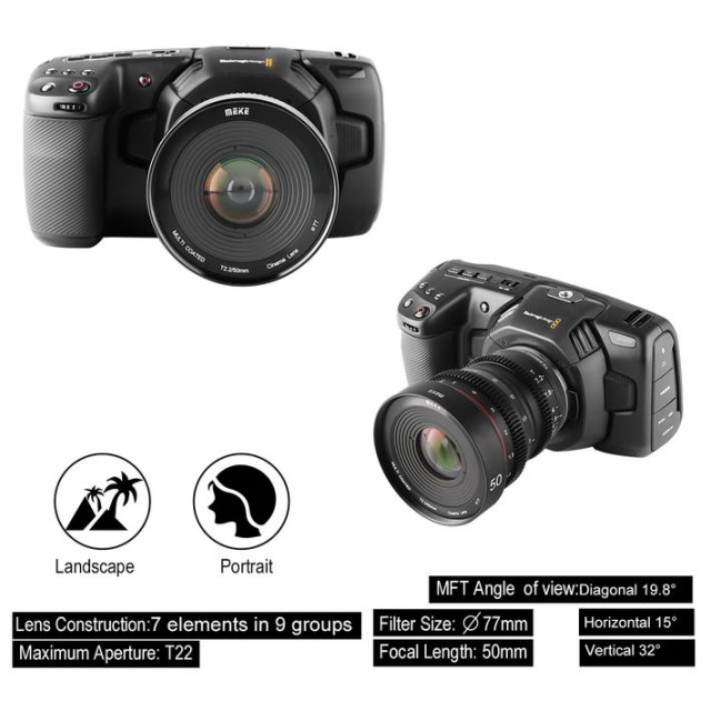 Potpuno ručni filmski objektiv s velikim otvorom blende T2.2 i žarišnom duljinom od 50 mm. Objektiv pruža oštru sliku s minimalnim nedostacima u boji i glatkim prikazom slike izvan dubinske oštrine, potisnutim efektom "disanja" i dugim hodom prstena za fokusiranje (270°) s M0.8 nazubljenjima i preciznim oznake (točnost cca. 10; nazubljenja i na prstenu…