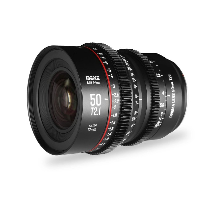 Drugi Meike film objektiv iz nove serije za fotoaparate sa senzorima veličine Super 35 (kružni promjer je 33,6 mm). Varijanta s EF bajunetom.