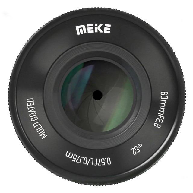 Potpuno ručni Meike 60mm f/2.8 Macro objektiv dizajniran je za fotoaparate sa senzorima veličine APS-C/S35 i dolazi u E, X, Z, EF, RF i MFT verzijama za montiranje. Objektiv nudi minimalnu udaljenost fokusa od 0,175 m, omjer povećanja od 1:1 i konstrukciju koja se sastoji od 11 elemenata u 8 grupa i dijafragme s devet lamela. U prodaji od 3/2023 .