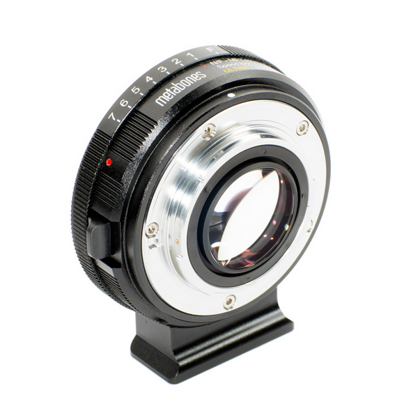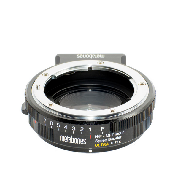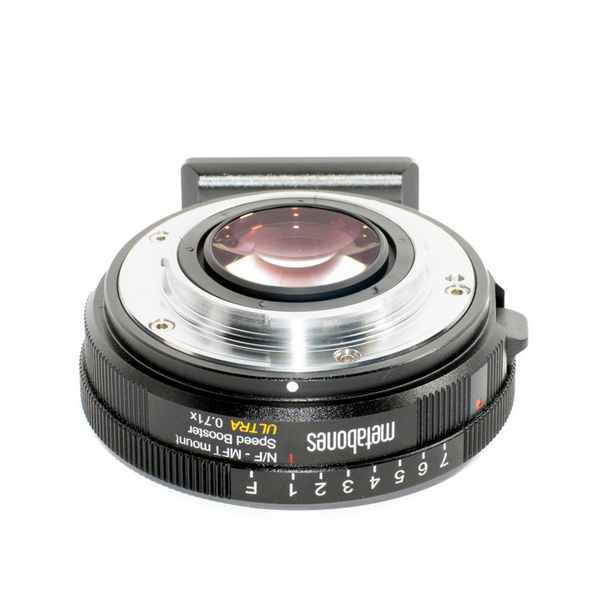 Metabones Nikon G na Micro Four Thirds Speed Booster ULTRA 0.71x adapter optimizira Nikon G i F leće za Micro Four Thirds fotoaparate, poboljšavajući skupljanje svjetla i vidno polje s visokokvalitetnim optičkim dizajnom za oštrije i svjetlije slike.