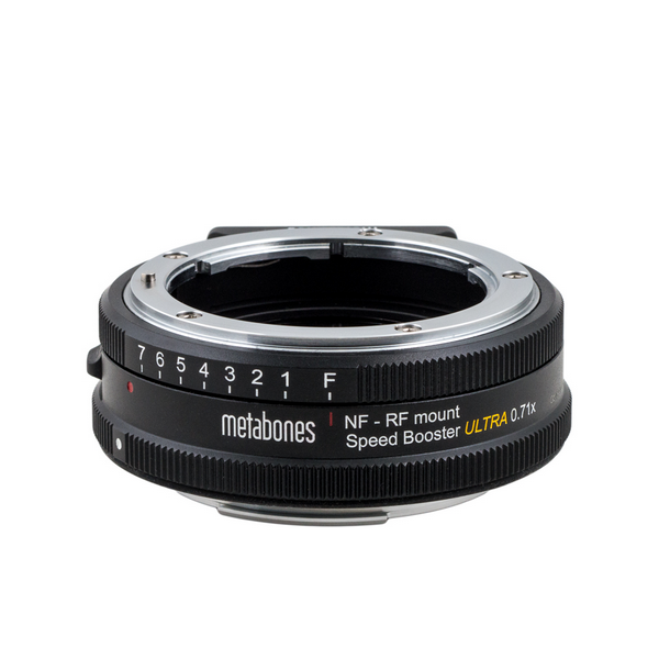 Metabones Nikon G Lens to RF-mount Speed Booster ULTRA 0.71x prilagođava Nikon F-mount objektive Canon RF-mount APS-C fotoaparatima, poboljšavajući otvor blende, vidno polje i oštrinu s visokokvalitetnim optičkim dizajnom, što ga čini idealnim za fotoaparate poput Canon C70 i RED Komodo.