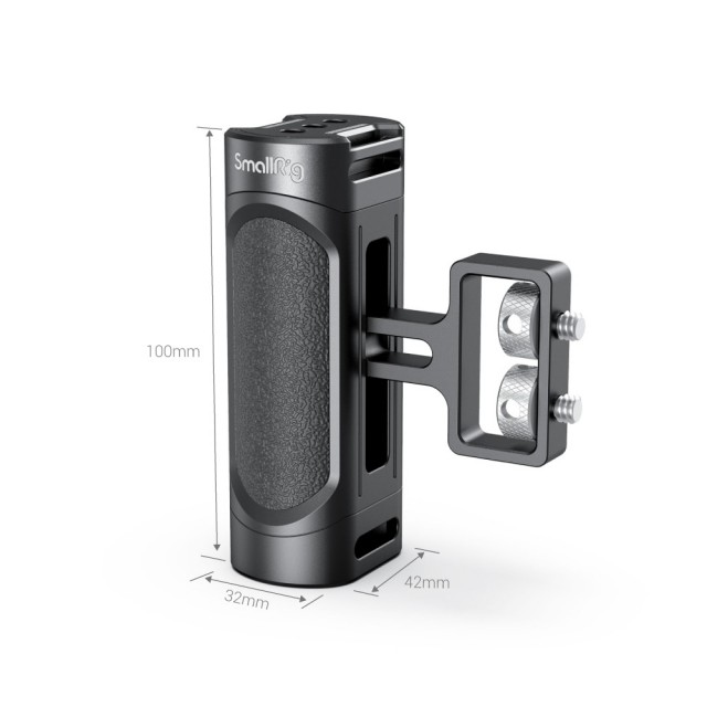 SmallRig Mini Side Grip (1/4"-20 vijaka) 2916 dizajniran je za fotoaparate bez ogledala, digitalne fotoaparate i druge male fotoaparate. Dva 1/4"-20 vijka pričvršćena su na bočnu stranu kaveza. Ručka podržava druge mogućnosti montiranja - bljeskalica i mikrofon mogu se pričvrstiti putem hladne utičnice 1241, a remen za ručni zglob kao što je 2456 može se pričvrstiti preko ušice kako bi se spriječilo slučajno ispuštanje kamere. Visoko podesiv za različite visine kaveza i podržava brzo prebacivanje s lijeve na desnu ruku s ugrađenim ključem. Prijenosna ručka izrađena je od aluminijske legure i plastike (PC+ABS) s ergonomskim dizajnom, pružajući filmašima glatko i udobno snimanje.