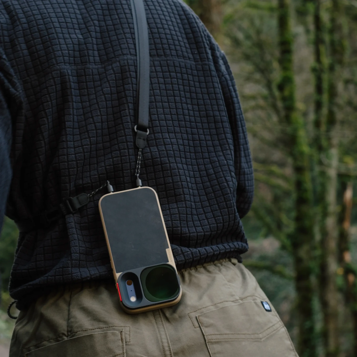 Traka preko tijela izrađena je od najlona vojne kvalitete koji je čvrst, a opet iznenađujuće mekan, pa je dizajnirana za cjelodnevno nošenje. Ne iritira kožu, ne troši se na rubovima i ne smeta u džepu. Lagan je, a ipak izdržljiv — to je modni dodatak kojeg nećete ni osjećati... sve dok vam ne spasi telefon.