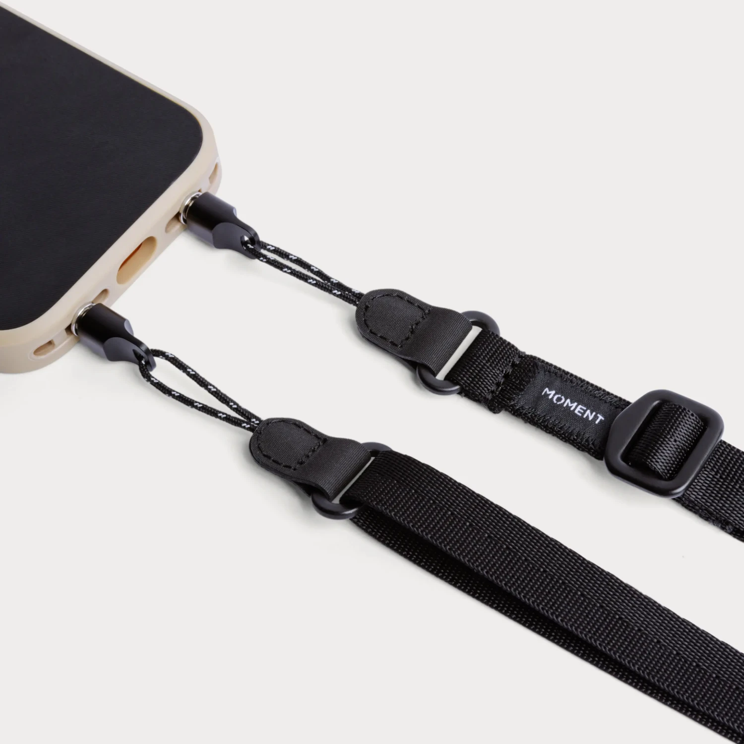 Traka se pričvršćuje izravno na točku za pričvršćivanje ugrađenu u svaku Moment futrolu za iPhone 17 (osim Air verzije), stvarajući izravnu vezu s vašim telefonom — a ne samo s futrolom. Bez plastičnih karabineri ili slabih točaka, samo jednostavna omčka od užeta koja se sigurno provlači i ostaje na mjestu bez obzira na to koliko ste aktivni.