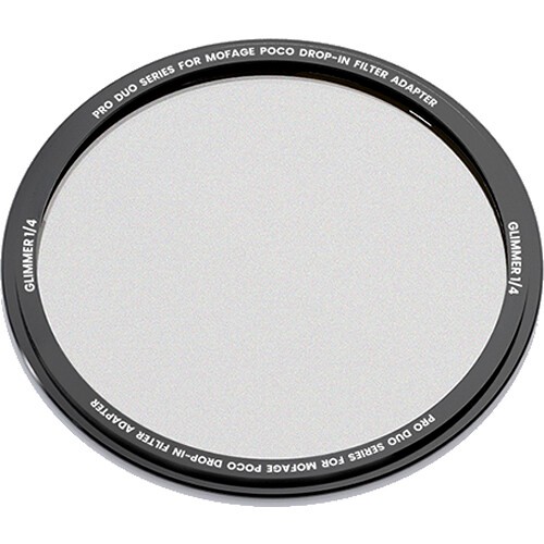 Mofage Glimmer 1/4 fleksibilni filter je specijalizirani difuzijski filter za POCO Pro Duo sustav . Stvara mekše slike i smanjuje kontrast, pružajući poželjne čiste cvjetajuće naglaske za suptilan, eteričan izgled. Kao fleksibilni filter , dizajniran je za KOMBINIRANJE s Pro Duo fiksnim filterima (FSND ili Clear) za kombinirane efekte.