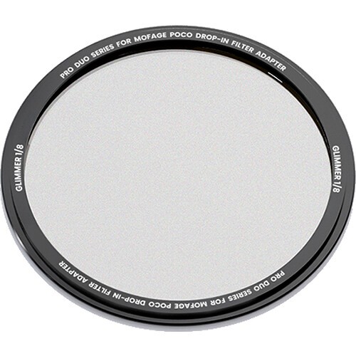 Mofage Glimmer 1/8 fleksibilni filter je difuzijski filter najblažeg stupnja u POCO Pro Duo sustavu . Pruža nevjerojatno suptilan, eteričan izgled nježnim smanjenjem kontrasta i stvaranjem minimalnog, čistog cvjetanja oko istaknutih dijelova . To je fleksibilni filter dizajniran za slaganje s fiksnim Pro Duo filterima (FSND ili Clear) za kombinirane efekte.