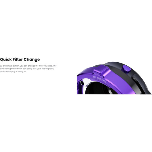 S mehanizmom za brzo otpuštanje , izmjena filtara je besprijekorna i učinkovita. Arca potporna tračnica s navojem 1/4"-20 osigurava sigurnu montažu, dok modularni sustav montaže omogućuje zamjenu za različite kamere .