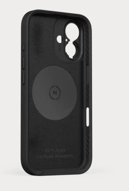 Moment Case za iPhone 16 - kompatibilna s MagSafeom - crna: profesionalna torbica za kameru za iPhone 16 dizajnirana za pričvršćivanje Moment leća, filtera i dodataka, sa zaštitom od pada s visine od 10 stopa, bežičnim punjenjem i poboljšanom kompatibilnošću s MagSafe dodacima.