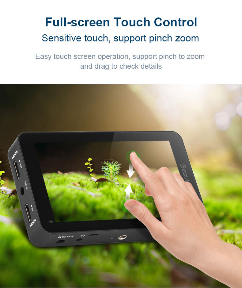 Desview R6 UHB monitor sa zaslonom osjetljivim na dodir ima ultra visoku svjetlinu od 2800 nita za pružanje jasne slike bez refleksije