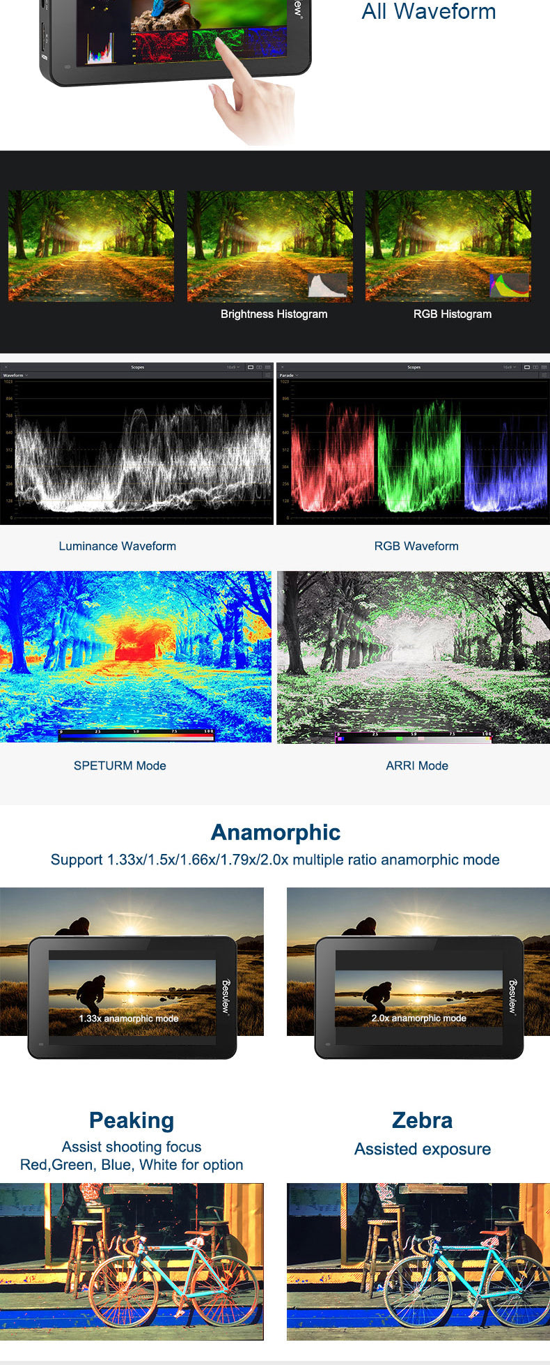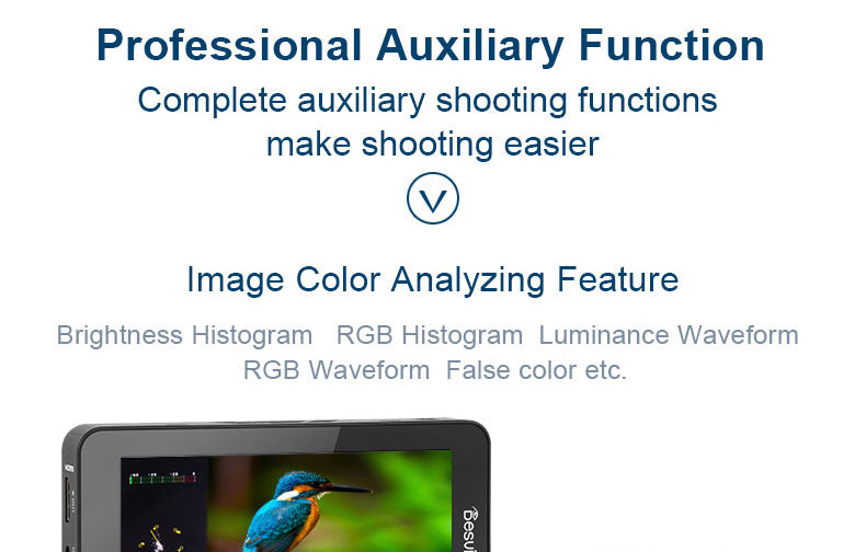 Opremljen s višestrukim funkcijama monitora za poboljšanje vaših filmova, kao što su False Color, Zebra, Histogram, Waveform,